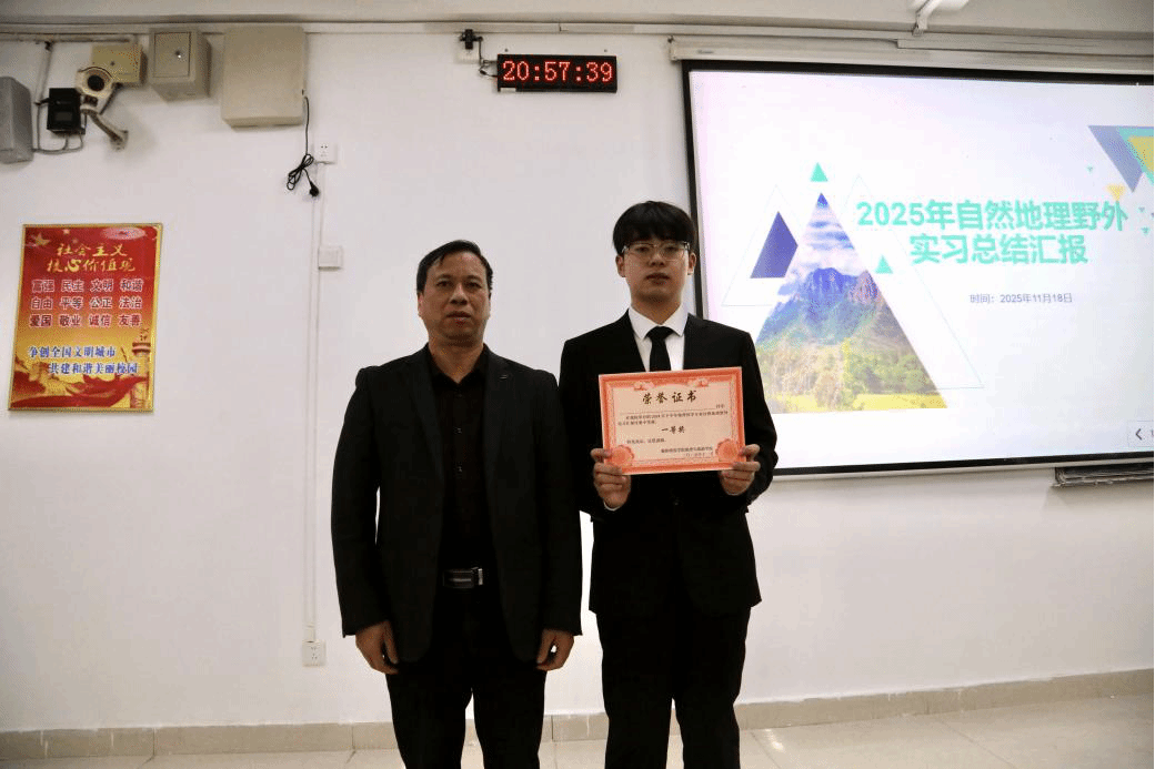 所有参赛小组汇报完毕后,经过各评委的打分,最终评选出了本次自然地理野外综合实习的优秀实习小组与优秀实习生,并由教师评委进行颁奖。