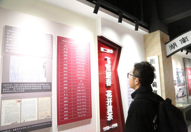 同学们跟随讲解员的指引,沿着历史的脉络,深入了解学校从1904年创办“湖南官立南路师范学堂”至今的发展历程。当看到1922年毛泽东同志来校建立湘南地区第一个党支部的珍贵史料时,现场不时传出阵阵惊叹。25级旅管1班吴季洲同学动容地表示:“站在先辈们曾经奋斗过的地方,看着这些珍贵的历史照片,我仿佛穿越到了那个热血沸腾的年代。作为新时代青年,我们要继承这份红色基因,不负时代使命。”
